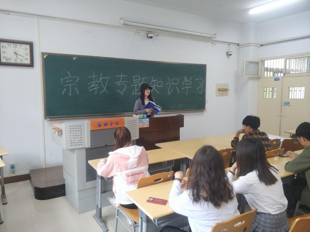 为深入贯彻习近平总书记关于宗教工作的重要讲话和重要批示精神,按照公司《关于做好宗教知识专题学习的通知》文件要求,公司18级计算机类五班团支部于5月7日下午在A14-225教室举行了“宗教知识专题学习”活动,辅导员老师张莎莎老师出席了此次活动。