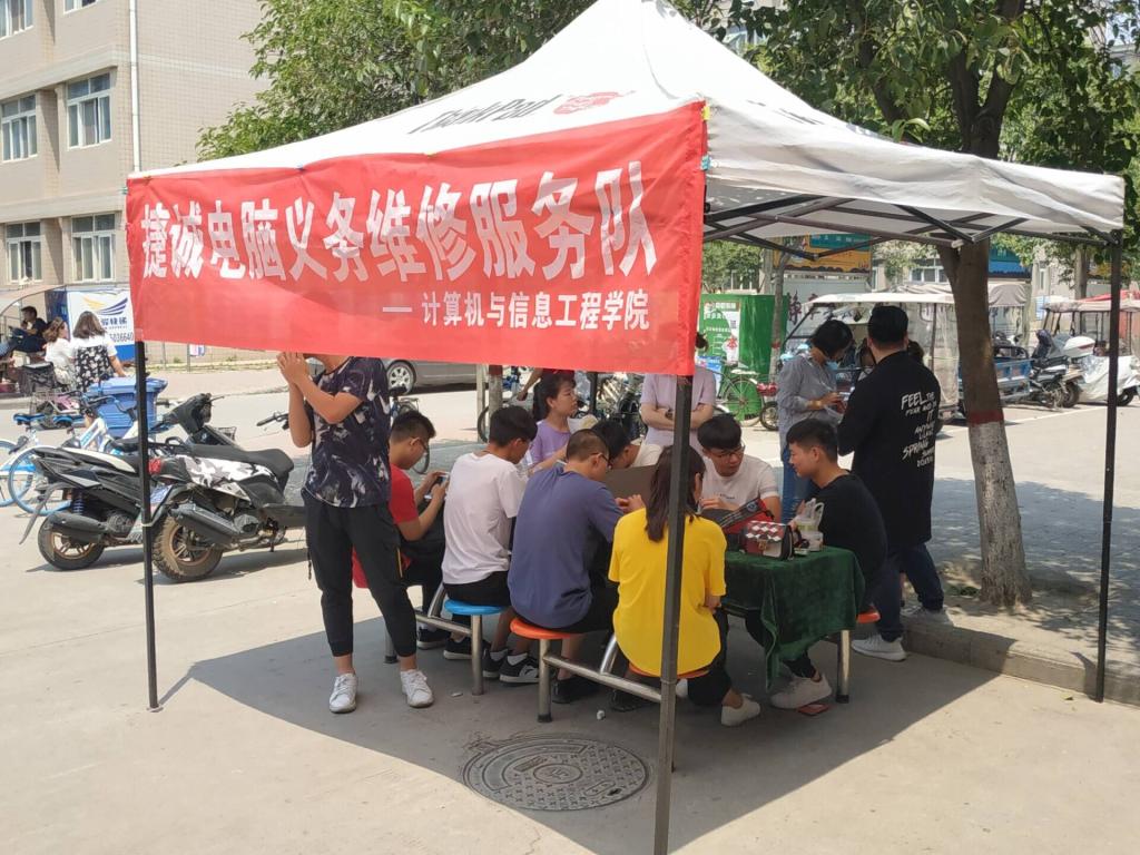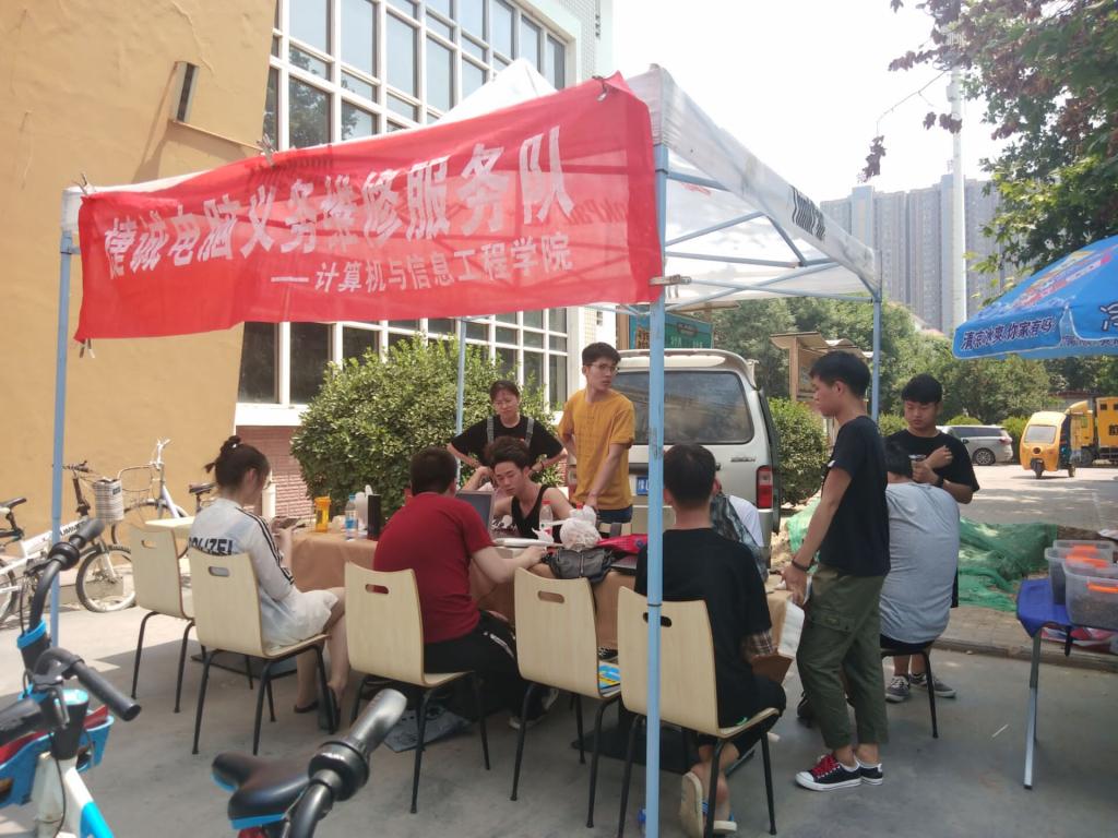 时值热夏,太阳成tyc7111cc官网也充斥着燥热的气氛,热风吹过,太阳高挂在头顶上,人微少。但公司“捷诚义务维修服务队” 的各位志愿者们秉承着服务师生的宗旨,不畏骄阳于5月25日上午如期到达东西区餐厅,为大家竭诚服务,解决各种电脑问题。