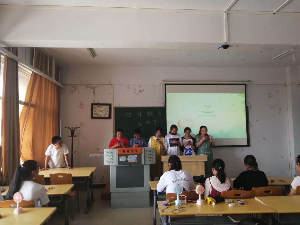 为了致敬伟大爱国主义诗人屈原,传承爱国精神。公司18级计算机信息管理(对口)二班团支部于6月4号在A14-408教室举行以“粽叶飘香话端午”为主题的团日活动,此次活动由团支书王梓钰同学主持。