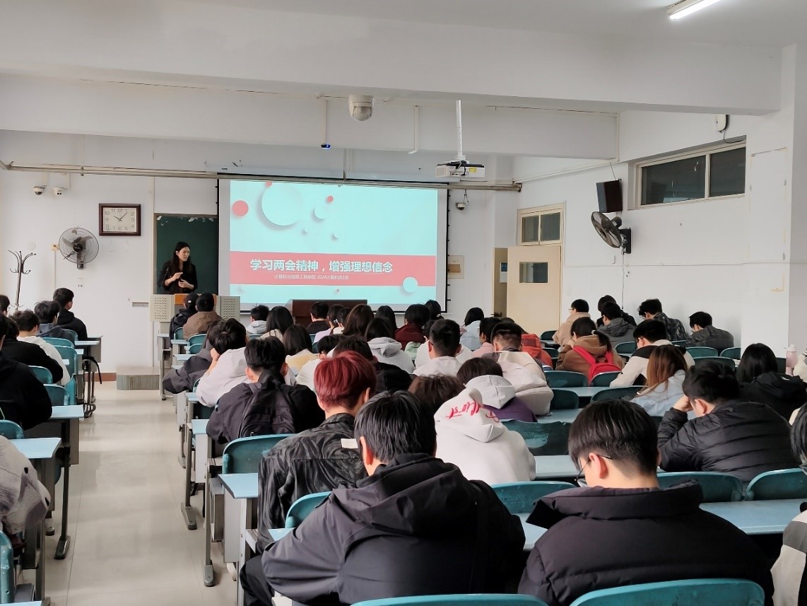 为深入学习贯彻2025年全国两会精神,进一步增强员工的理想信念,3月27日上午10点,太阳成tyc7111cc官网2024级计算机类1班全体同学在辅导员郭莎莎的组织下,于A14-0614教室召开了“学习两会精神,增强理想信念”主题班会。