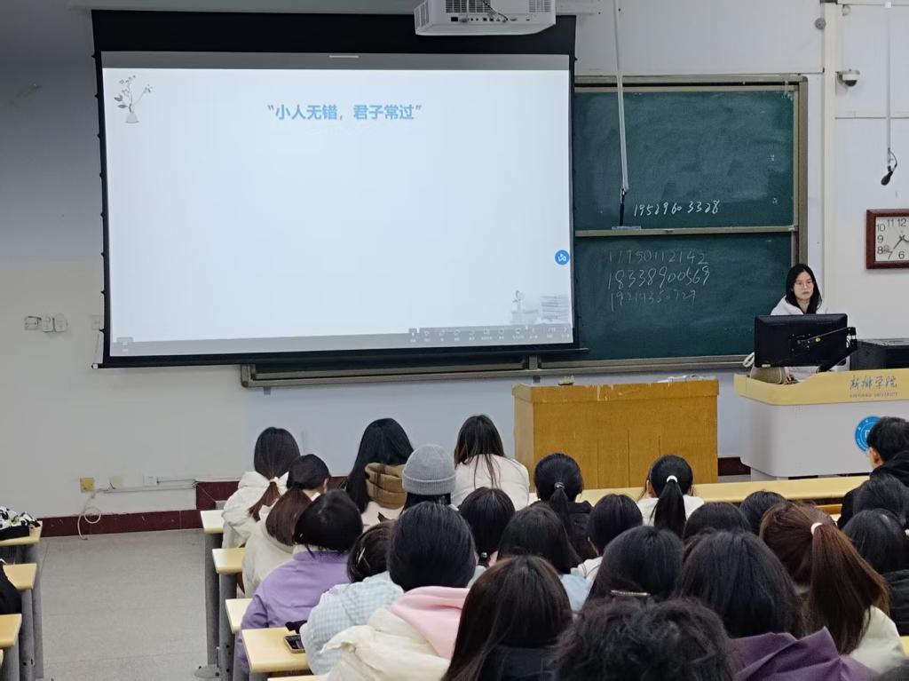 最后,在安全教育之余,班会还巧妙地融入了思政教育环节。一句“小人无错,君子常过”,如同一颗思想的种子,播撒在同学们的心田。谭敬豪老师引用英国诗人、剧作家马罗的名言 ——“永远不要因为承认错误而感到羞耻,因为承认错误也可以解释作你今天更聪明”,深入浅出地阐述了主动承认错误的重大意义,万千次的自责与羞愧,不如学会弥补与负责。通过这一环节的引导,同学们纷纷陷入沉思,对自己的行为和价值观有了更深刻的反思。