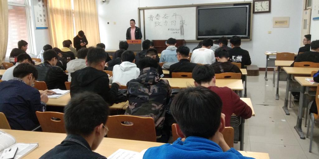 英语考试四级即将到来,为了让每位同学更好冲刺四级考试,特举办英语考试心得交流会。公司18级物联网1班团支部11月13日在A14-519举办“冲刺四级”英语考试心得交流会。
