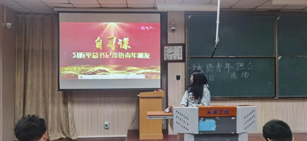 活动伊始,团支书马柳柳带领同学们了解了习近平总书记关于寄语回信中的内容,提倡同学们要努力学习,掌握过硬本领。随后,同学们对“学习寄语回信,体悟青年担当”这一主题进行讨论,并发表自己的见解,纷纷表示在祖国最需要的时候,作为新时代青年人应当全力以赴。最后,团支书马柳柳对此次团日活动做出总结,同时也对同学们学习习近平总书记寄语中担当时代重任做出了具体要求。