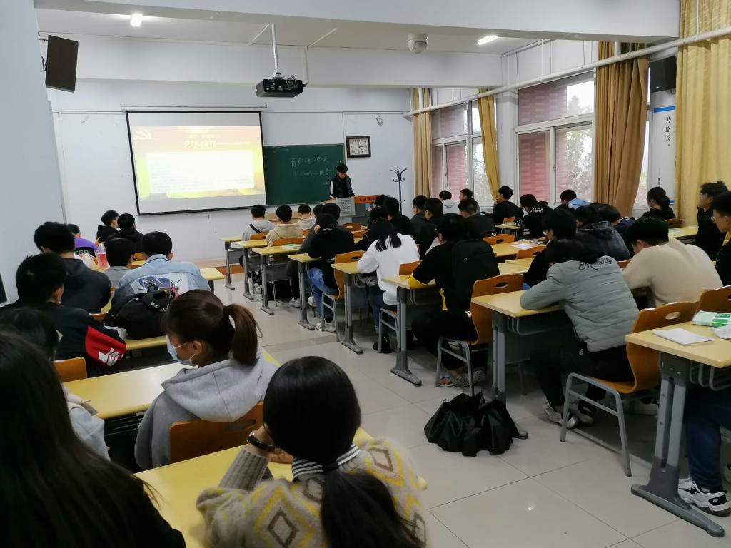 活动伊始,由宣传委员梁宏帅通过精美的PPT向同学们讲述了党史、社会主义发展史、新中国学习史以及改革开放史,使同学们对新中国的光辉历程有了更深的认识。随后,同学们对“青春研学四史·牢记初心使命”这一主题进行讨论,并由员工代表盈倩倩同学上台发言,她表示作为新时代中国青年要积极传承红色基因,树立理想信念和对中华民族伟大复兴中国梦的信心。最后,宣传委员梁宏帅以小故事的形式为大家讲解了红色政权来之不易、新中国来之不易、中国特色社会主义来之不易。