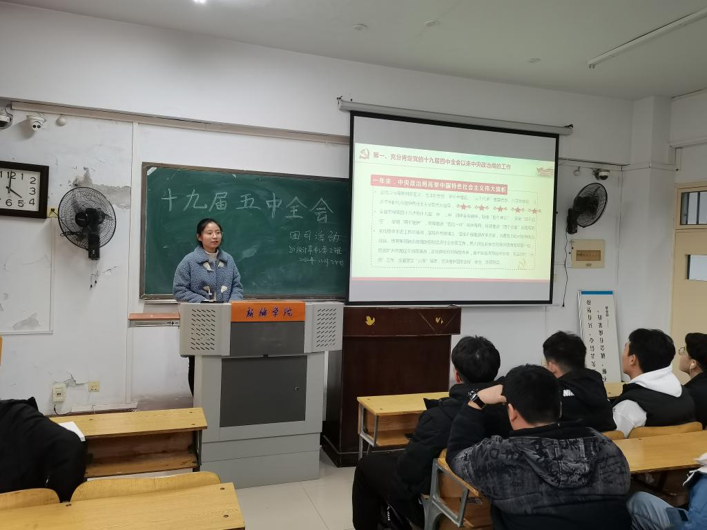 为了进一步让同学们学习十九届五中全会精神,激发奋斗精神,20级计算机类2班全体成员于11月24日下午3点在A14-522教室开展了“学习十九届五中全会精神”主题团日活动。
