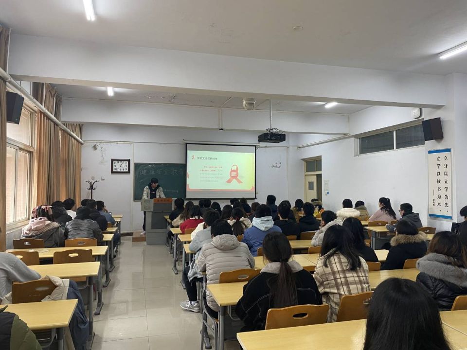 此次活动以PPT的形式展开,由团支书张文秒主持。活动伊始,由团支书张文秒向同学们介绍艾滋病病理知识及其预防知识,并且强调了艾滋病自愿咨询检测是及早发现感染者和病人的重要防治措施。随后,通过团支书对PPT的讲解,让同学们对艾滋病有了进一步的认识,了解到艾滋病的主要通过性接触、血液和母婴三种途径传播,与艾滋病病毒感染者或病人的日常生活和工作接触都不会被感染等关于艾滋病的基本知识。最后,团支书张文秒对此次活动进行了总结,并号召同学们行动起来,积极参与到抗击艾滋病的行列中来,传播正确的艾滋病知识,让艾滋病远离大家。
