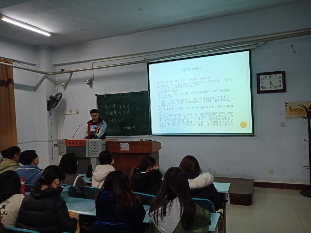 为更好的传承黄河文化,坚定同学们的文化自信,20级计科(专升本)2班全体成员于12月14日下午06点20分齐聚A14-127教室开展了以“讲好黄河故事,传播黄河文明”为主题的团日活动。