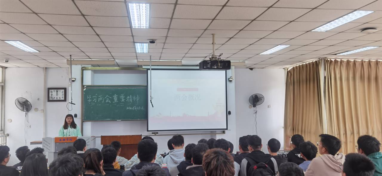 活动伊始,团支书马柳柳通过精美的PPT展示带领全体成员从“两会”概况出发,让全体成员了解“两会”开展流程等相关知识,并通过播放“两会”相关视频,更加深入的向同学们展示和讲解了今年“两会“的内容,其内容涉及民生,经济,法律等各个方面的大举措、大规划。随后,团支书马柳柳和同学们一起探讨了“两会”与老员工的关系,在讨论中同学们踊跃发言,并且刘梦佳同学作为员工代表进行发言,表示“两会”是当代老员工的指明灯,为同学们走向成功指明了方向。团日活动最后,团支书马柳柳上台对此次团日活动进行总结,并且号召全体同学要自觉领悟“两会”精神,深刻理解作为新时代青年所肩负的责任与历史使命,同时在今后的学习和生活中也要践行初心和使命。