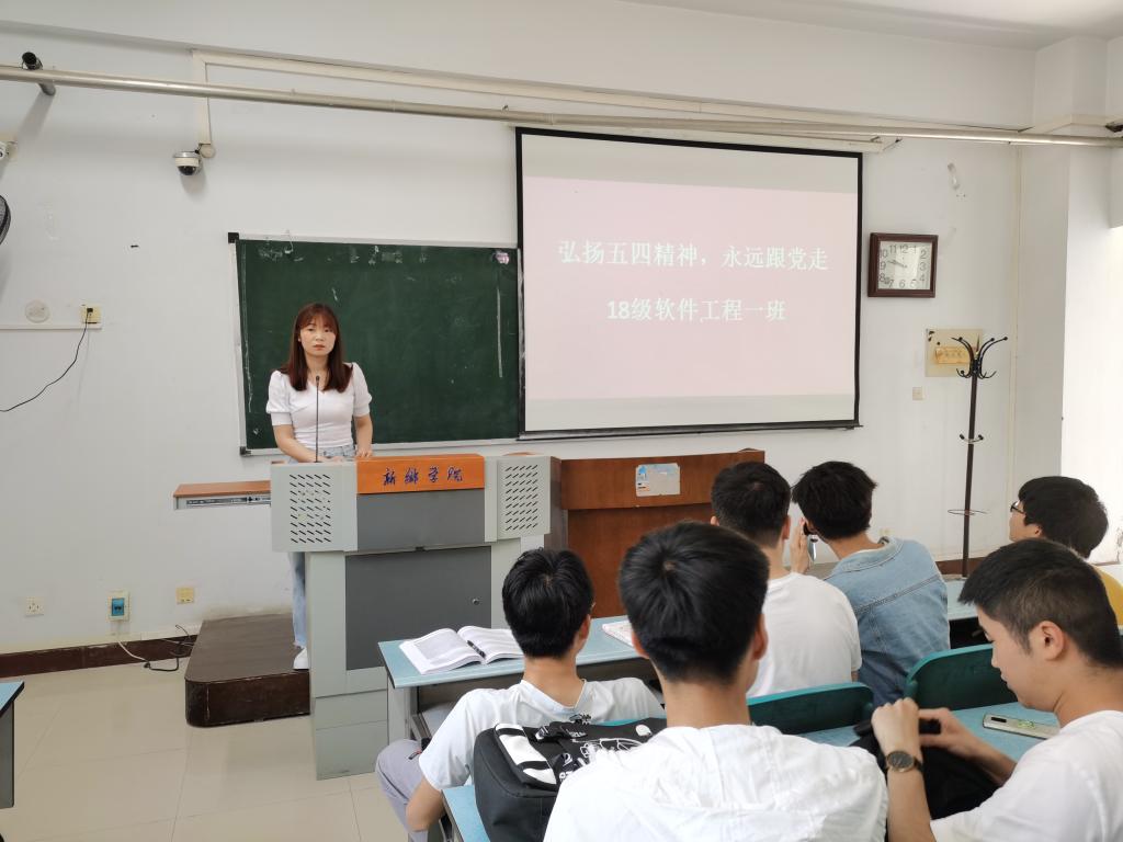 为弘扬“五四”精神,展现新青年风采,在实践与学习过程中传承“五四”精神。公司18级软件工程1班团支部成员于2021年5月18日下午三点在A14-127教室举办了“弘扬五四精神,永远跟党走”主题团日活动。