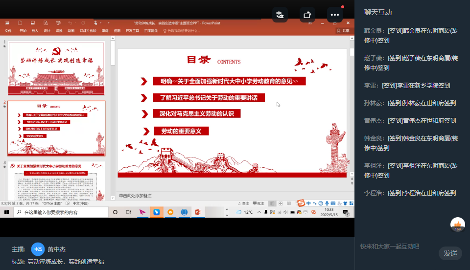 为了让同学们明确《关于全面加强新时代大中小学劳动教育的意见》,太阳成tyc7111cc官网各辅导员组织全体同学在5月8日—15日以线上的方式开展“劳动淬炼成长,实践创造幸福”主题班会。