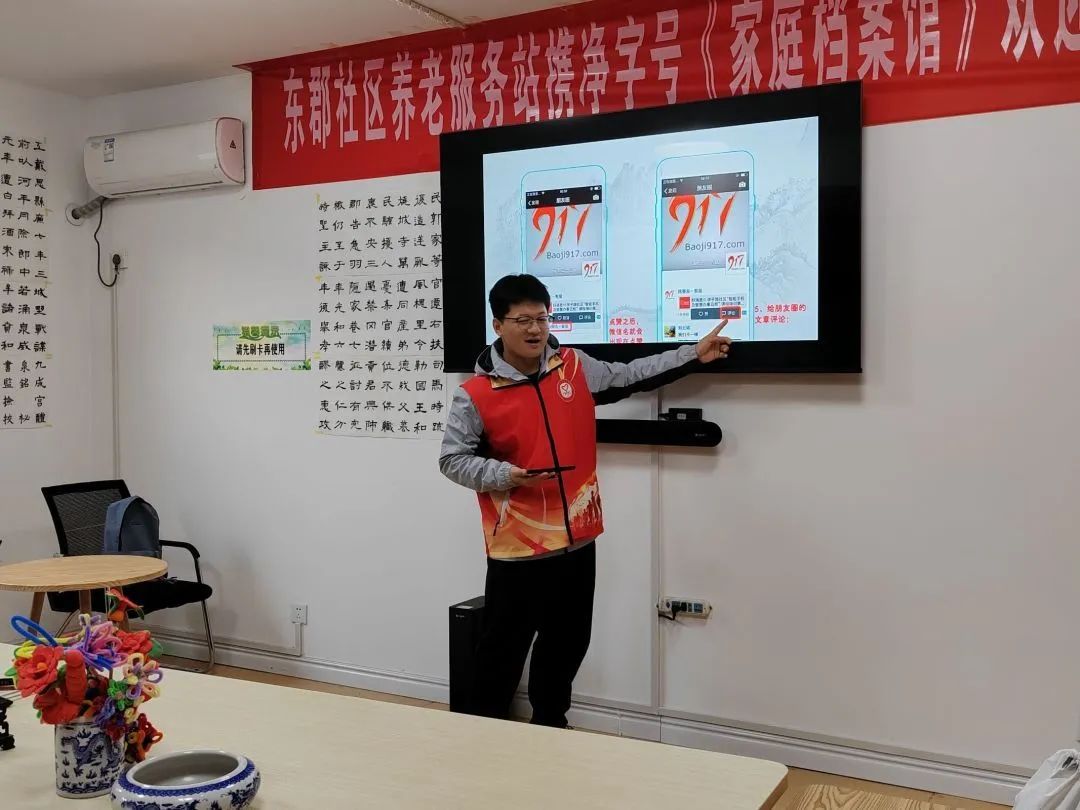 另一批志愿者来到了东郡府苑,志愿者用PPT向老年人介绍智能手机的功能与使用技巧,并教老人们做手指操和拍肩操,现场气氛热烈,老人们喜笑颜开。