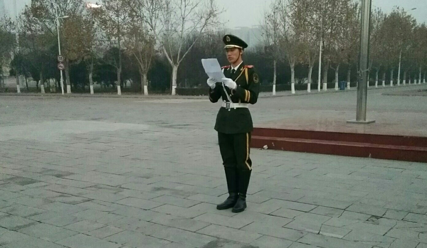升旗仪式于7:00准时开始,国旗班的旗手们迎着朝阳,以饱满的热情,护卫着五星红旗来到旗杆下。当雄壮有力的《义勇军进行曲》响彻整个校园时,全体师生集体行注目礼,全场弥漫着庄严肃穆的气息。鲜艳的五星红旗冉冉升起,激发了所有同学不断向上的斗志,点燃了在场所有人的爱国激情。升旗完毕后,由16级员工代表毛岭同学和国旗护卫队代表师东超同学依次上台进行国旗下讲话。毛岭同学的发言指出作为一个优秀的老员工应心怀祖国,严格要求自己。师东超的演讲则体现了当代老员工的社会责任感,要牢记历史使命,发扬中华精神。