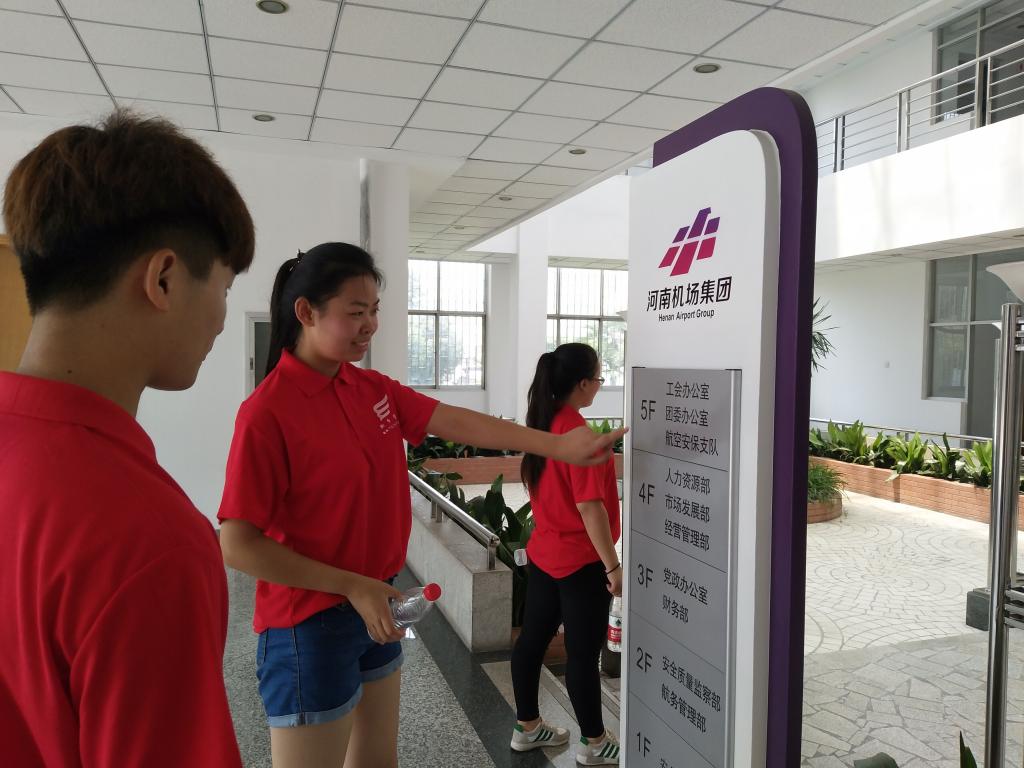 实践团队来到新郑国际机场有限公司,通过参观及与工作人员的简单交流,了解新郑航空港经济综合实验区的发展过程。接下来通过几天对航空港实验区附近的环卫工人、商贩、居民、工作人员的采访及问卷调查,调研航空港区建设对基层人民生活带来的影响。实践团队了解到,航空港实验区的建立提供了大量的基本工作岗位;航空港的智能化建设,为人们的生活提供了便利;航空港经济区不仅要智能化发展还要解决原农村地区的人员安置问题,实现航空港经济实验区的全面发展·······接下来,团队成员将整理收集来的资料,利用专业优势,宣传航空港经济综合实验区建设对新乡、对河南带来的巨大变化。