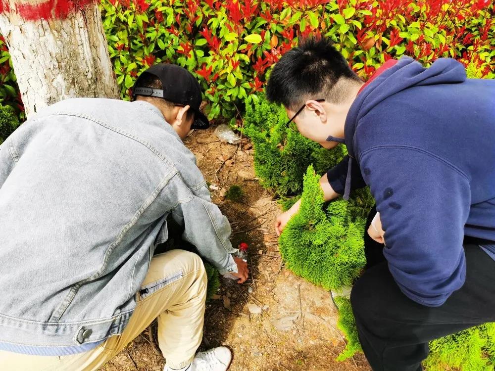 在校园的道路上,同学们不怕苦不怕脏,看见路边的垃圾,毅然决然去把它拾起,为校园的绿色贡献了自己的一份力量。