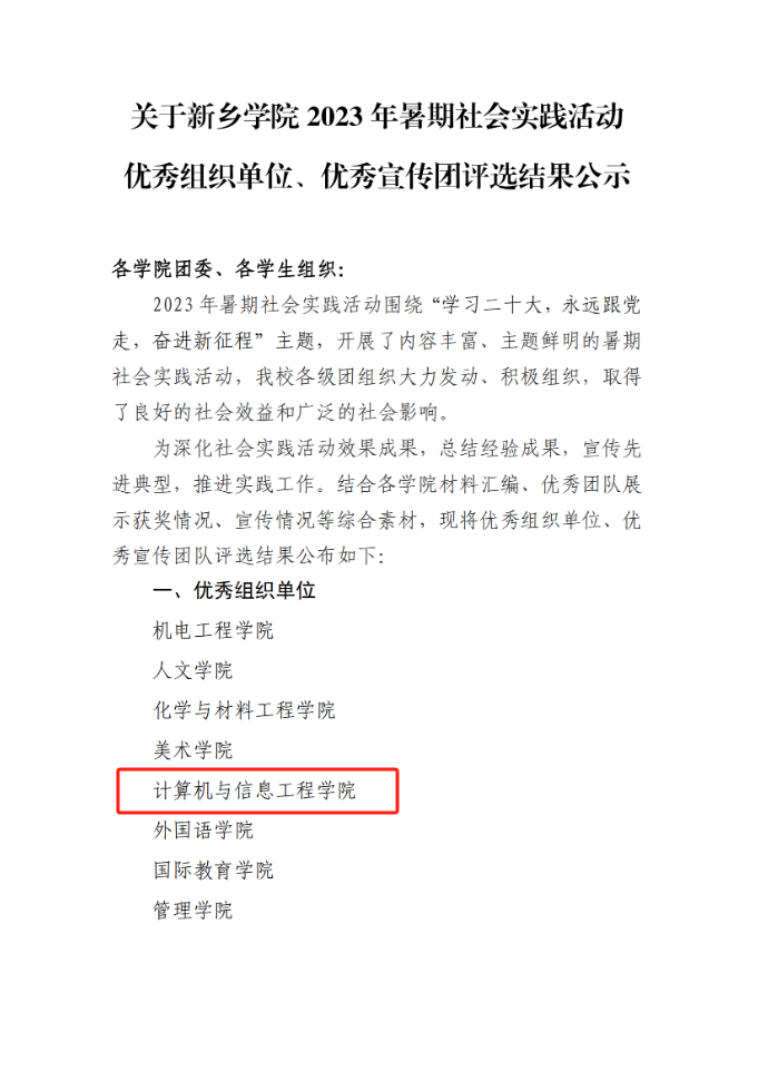经材料申报、团队展评等环节,公司被评为2023年度暑期社会实践活动“优秀组织单位”“优秀宣传团队”。在团队项目评选中,公司“寻智慧红旅——河南红色景点数字化建设调研”实践团荣获项目一等奖;“专业服务进社区,智慧助老暖人心”志愿服务队、“平安和谐同梦,社会治理同行”赴各乡村社会治理实践团、“捷诚电脑义务维修”志愿服务队、“数字赋能,演绎黄河文明”社会实践团分别荣获项目二等奖。