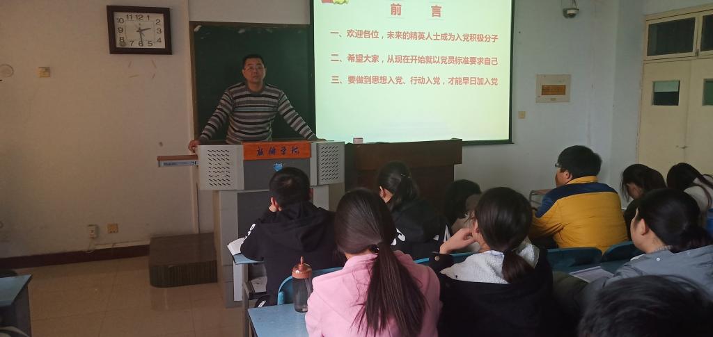 此次党课培训旨在提高入党积极分子的党性修养和理论水平,帮助入党积极分子端正入党动机,确立为共产主义奋斗终身的信念。同时进一步发挥入党积极分子在班级中的模范带头作用,为党组织输送优秀人才。