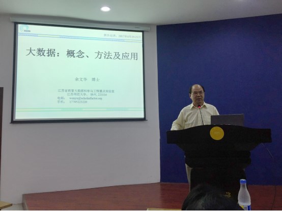 4月19日下午,江苏省教育大数据科学与工程重点实验室主任余文华教授应邀来公司进行有关大数据技术与应用方面的学术交流,并为公司师生作了一场题为《大数据概念、方法以及应用》的专题讲座。