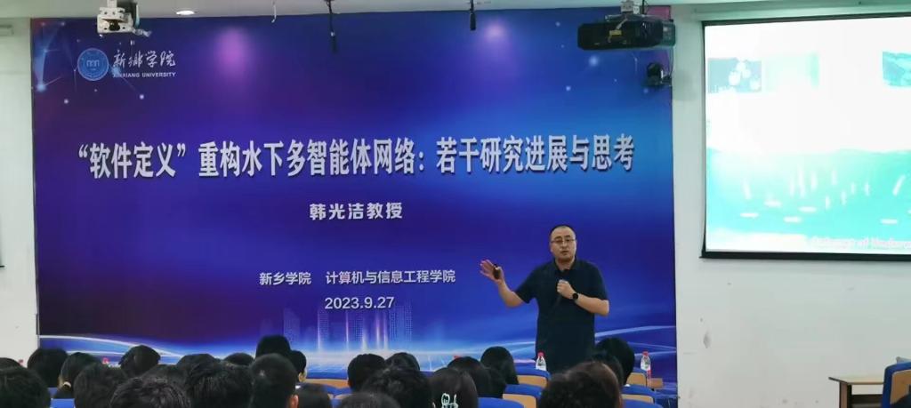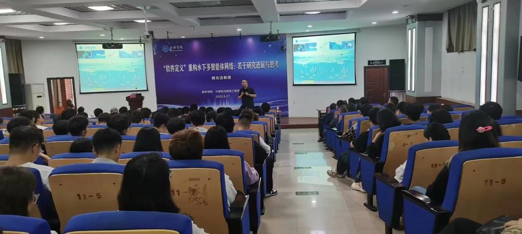 9月27日下午,河海大学信息科学与工程公司经理、江苏省333高层次人才(第二层次)、江苏省有突出贡献中青年专家韩光洁教授来公司做了题为“’软件定义’重构水下多智能体网络:若干研究进展与思考”的学术报告。此次报告由计算机公司经理茹蓓主持,公司分党委书记李文波、各教研室骨干教师及2021级物联网工程专业员工参加了本次学术报告。