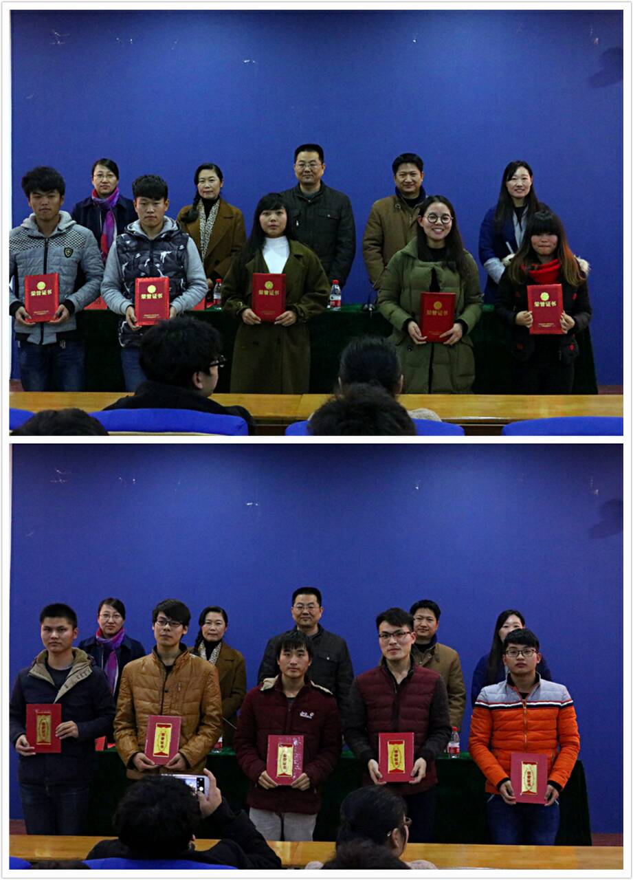 党总支书记李文波宣读了表彰决定。表彰对406名先进个人及19个先进集体提出表彰,同时号召广大同学以受表彰的同学和先进集体为榜样,坚持德、智、体、美、劳全面发展。随后先进班集体代表张文康同学、员工竞赛获奖代表秦宏泰同学、优秀员工干部代表吴艳彩同学分别上台做了发言。与会领导为获奖集体及员工代表颁奖并合影留念。