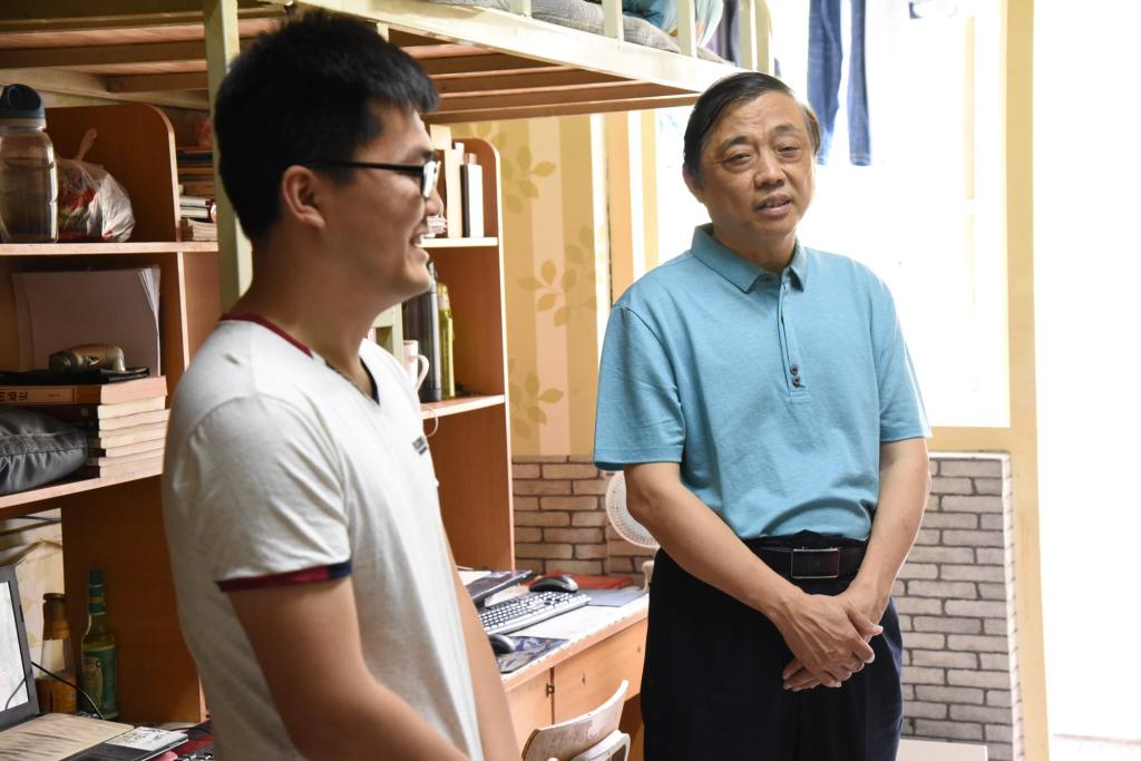 走进干净整洁的毕业生寝室,刘董事长给予了充分的肯定。在与毕业生的交流中,刘董事长向同学们的顺利毕业表示祝贺,详细地询问了毕业生的毕业去向、就业情况以及行李托运等事宜,对毕业生离校前的就业状况、行程安排、未来的打算等进行了细致地了解。他嘱咐毕业生注意安全,常回母校看看,他希望毕业生们大胆地在纪念册上给公司提意见和建议,“你们的声音是公司最宝贵的财富”。从这些建议中,公司深刻感受到即将毕业的学子对母校的眷念。