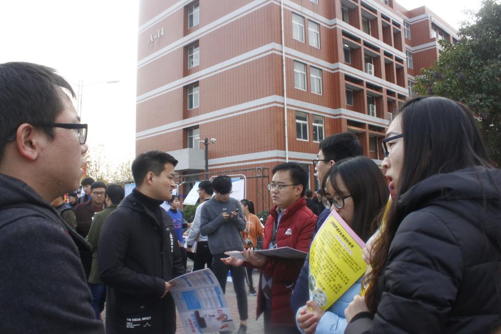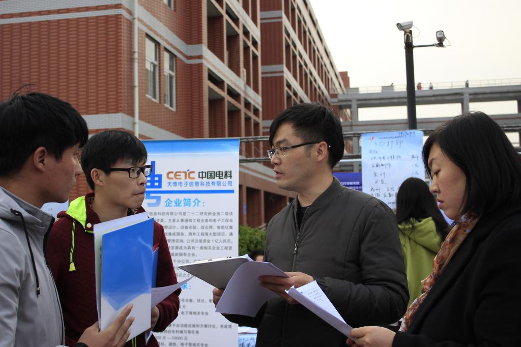 2017年11月21日下午15:00整,公司承办的2018届毕业生IT专场招聘会在A14号楼东门拉开了帷幕。公司潘红经理、党总支李文波书记、党总支汤沛副书记以及公司全体辅导员参加了本次招聘会。