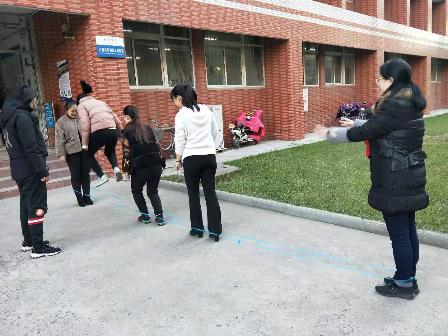2019年12月3日16:00在A14楼前,计算机公司分工会组织开展老师们喜爱的传统体育比赛项目跳绳比赛。