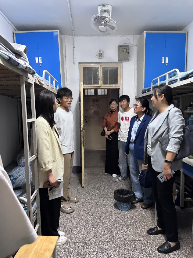 9月28日,在中秋国庆双节来临前夕,公司党委书记李文波、经理茹蓓、党委副书记郭桂花、副经理赵芳、分团委书记孟一、学工办副主任牛靖雯以及辅导员老师一同前往新生宿舍,关心慰问同学新学期学习、生活情况并送上节日的祝福。