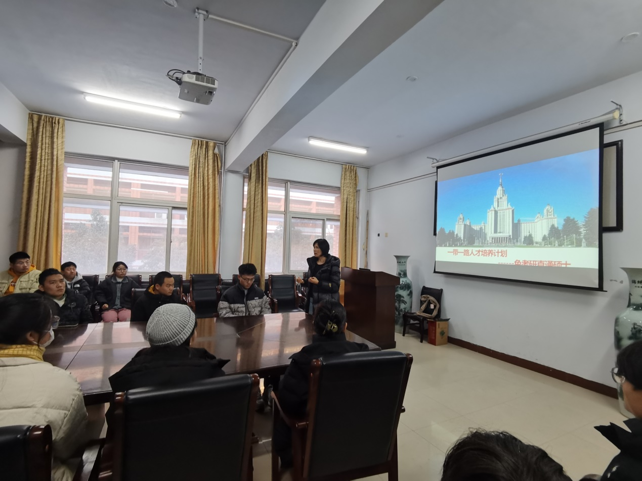 李老师就俄罗斯高等教育状况、俄罗斯国家大学的设立及俄罗斯国立社会大学基本情况、专业基本情况、公费项目详情等相关事项跟同学们进行交流。