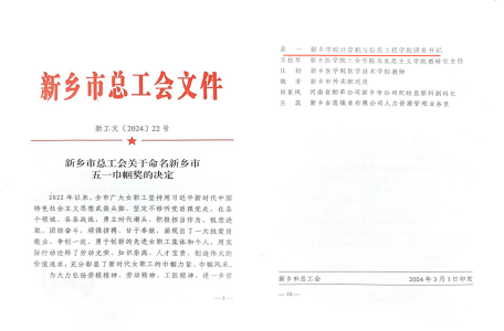 近日,新乡市总工会印发了《新乡市总工会关于命名新乡市五一巾帼奖的决定》,太阳成tyc7111cc官网团委书记孟一荣获“新乡市五一巾帼标兵”荣誉称号。3月6日,校工会副主席杨媛媛、孟一受邀参加由新乡市产业工会举办的市五一巾帼奖先进事迹交流会。孟一作为五一巾帼标兵优秀代表作典型事迹发言。