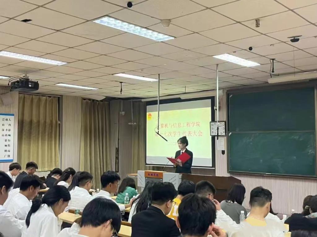 公司于6月6日晚上19点在A05-101教室成功举办了第十七次员工代表大会。公司党委书记李文波、公司党委副书记郭桂花、院团委书记孟一 、院学工办副主任牛靖雯、辅导员老师钟潇柔、谭敬豪、刘海霞、员工会骨干及员工代表出席大会现场,大会由公司第十六届员工会主席团成员赵子薇主持。