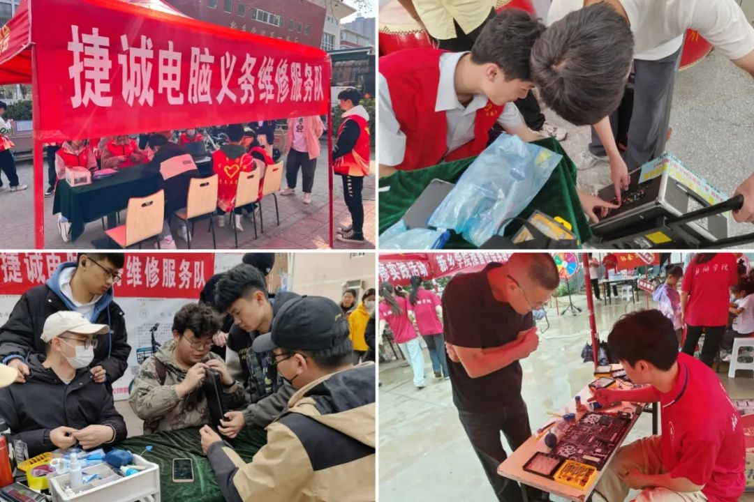 “学以致用,捷诚服务”——捷诚电脑义务维修志愿服务项目于2010年组织实施,以公司捷诚电脑义务维修服务队为载体,以雷锋精神为指引,本着“学以致用,捷诚服务”的宗旨,通过 “应急处理”、“在约服务”、“定点维修”、“技巧传授”等多元化服务方式,于每周六及寒暑假在校园、社区、村庄、企事业单位开展义务维修和咨询服务,至今已坚持14年。服务队定点集中开展服务次数累计200余次,一对一线下服务不计其数,服务近万人,受到一致好评。其服务事迹多次被新乡日报、中青校园报道。2023年,捷诚电脑义务维修志愿服务队被命名为“新乡市学雷锋活动示范点”,组建的实践团队在暑期社会实践表彰中多次被评为校级优秀团队二等奖、三等奖。