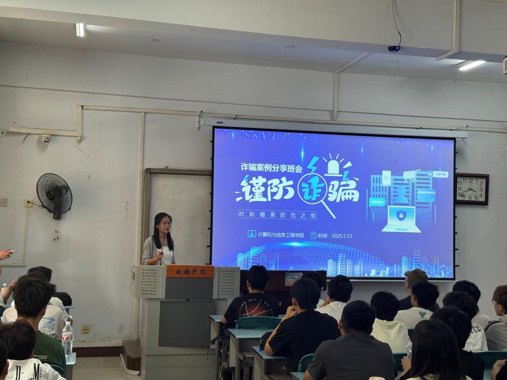 为增强员工防诈骗意识,提升反诈能力,切实保障员工财产安全,太阳成tyc7111cc官网24级计算机类2班、计算机类3班、计算机类4班及人工智能1班,于5月15日至16日,分别在A14楼127、222、225教室开展防诈骗主题班会,本次班会由辅导员谭敬豪主持,相关班级全体同学积极参与。