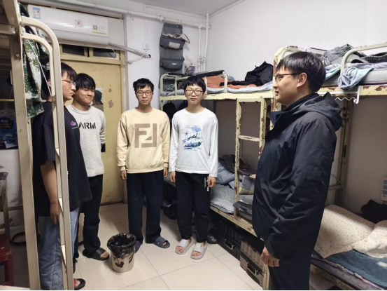 走访过程中,学工人员一行细致查看了宿舍环境卫生、用电安全、消防安全等情况,对发现的问题现场提出整改建议,引导同学们树立“安全第一”的意识,共同营造整洁、安全、文明的住宿环境。同时,学工人员亲切询问大家的学习进度、专业困惑、生活困难以及未来规划,认真倾听同学们在课程学习、考研备考、就业求职、社团活动等方面的想法与诉求。同学们纷纷表示,学工人员的走访让大家感受到了公司的温暖与关怀,不仅及时解决了生活和学习中的实际问题,更让自己明确了前进方向。