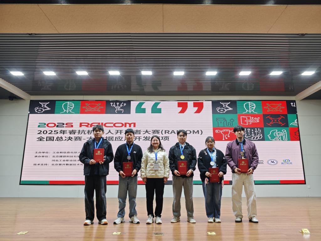 11月15日,2025年睿抗机器人开发者大赛(RAICOM)大数据应用开发赛全国总决赛在河北石家庄市河北工业职业技术大学揭开序幕,公司孔祥盛、牛靖雯老师带领曹富强、杜琳洁、李琛、吴俊磊、李旭阳五位员工以个人赛形式参赛,通过努力拼搏,全员获奖,获得国赛一等奖1项(曹富强)、二等奖1项(杜琳洁)、三等奖3项(李琛、吴俊磊、李旭阳),牛靖雯老师获“优秀指导教师”称号,以优异的表现和扎实的专业能力,为公司再添荣誉。