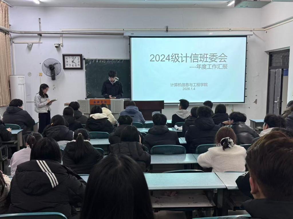 为进一步加强班级建设,提高班委工作质量、优化班级管理,公司2024级本科班委工作总结交流会于2026年1月4日在A14-128教室顺利开展,本次会议由辅导员谭敬豪老师主持。