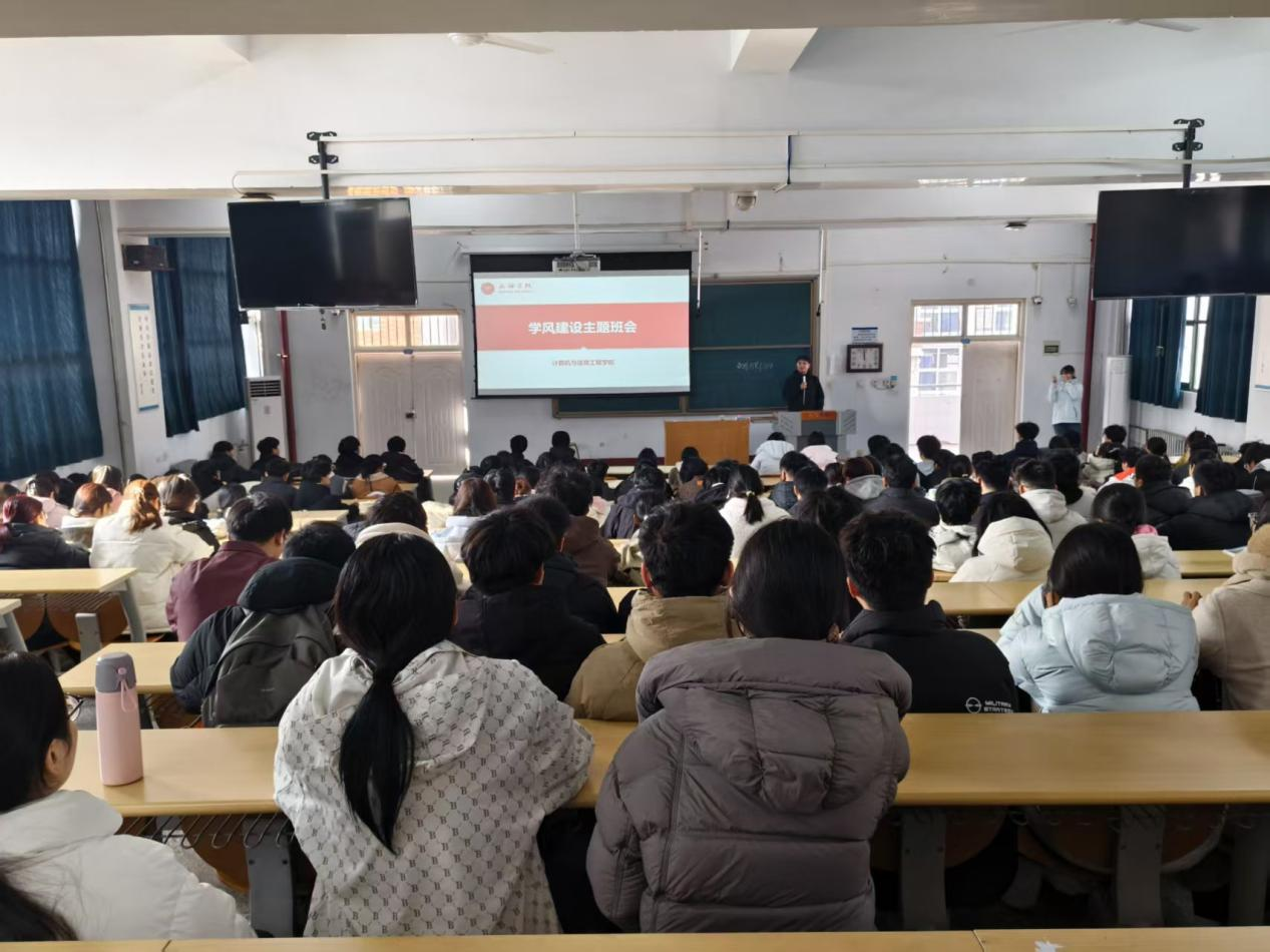 班会围绕学风建设展开宣讲。老师们结合班级学习现状,分析了当前学风存在的优势与不足,强调了良好学风对个人成长和班级发展的重要意义。同时,老师们向同学们提出明确要求,鼓励大家制定合理学习计划,主动攻克学习难点,积极参与课堂互动与学术交流,营造互助共进的学习氛围。